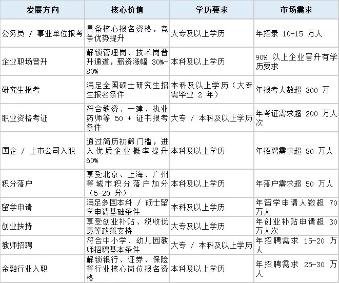 | 想进入国企、上市公司、优质企业,需学历背书提升竞争力的人员 |