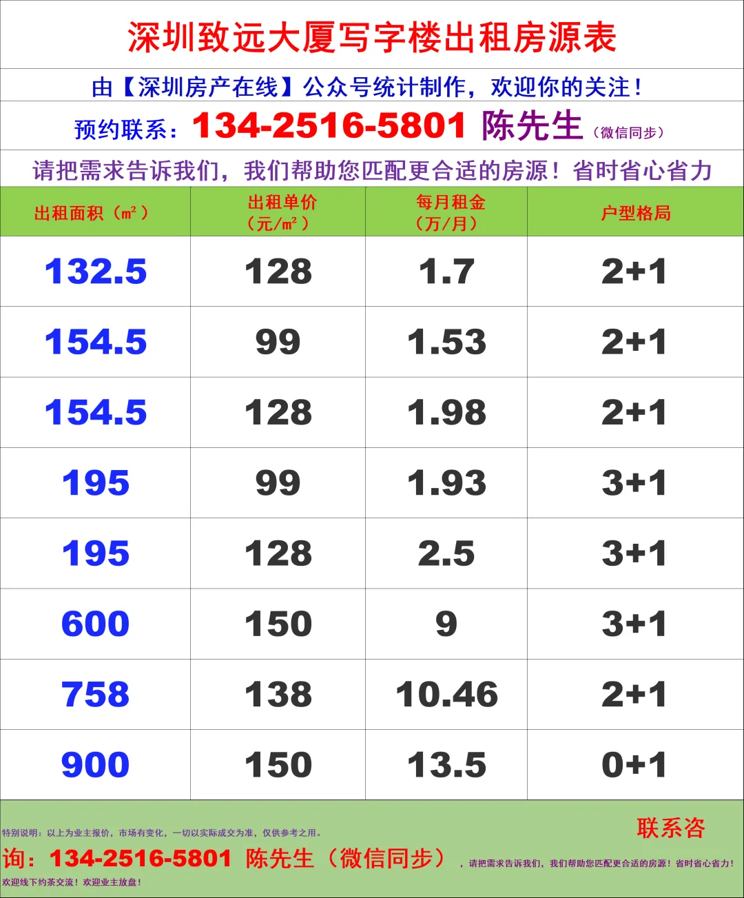 【深圳房产在线】陈经理写字楼租售团队:134-2516-5801 (微信同步)