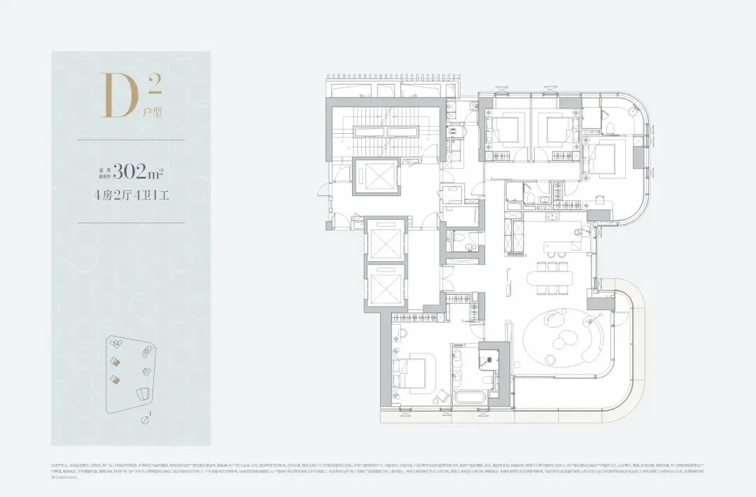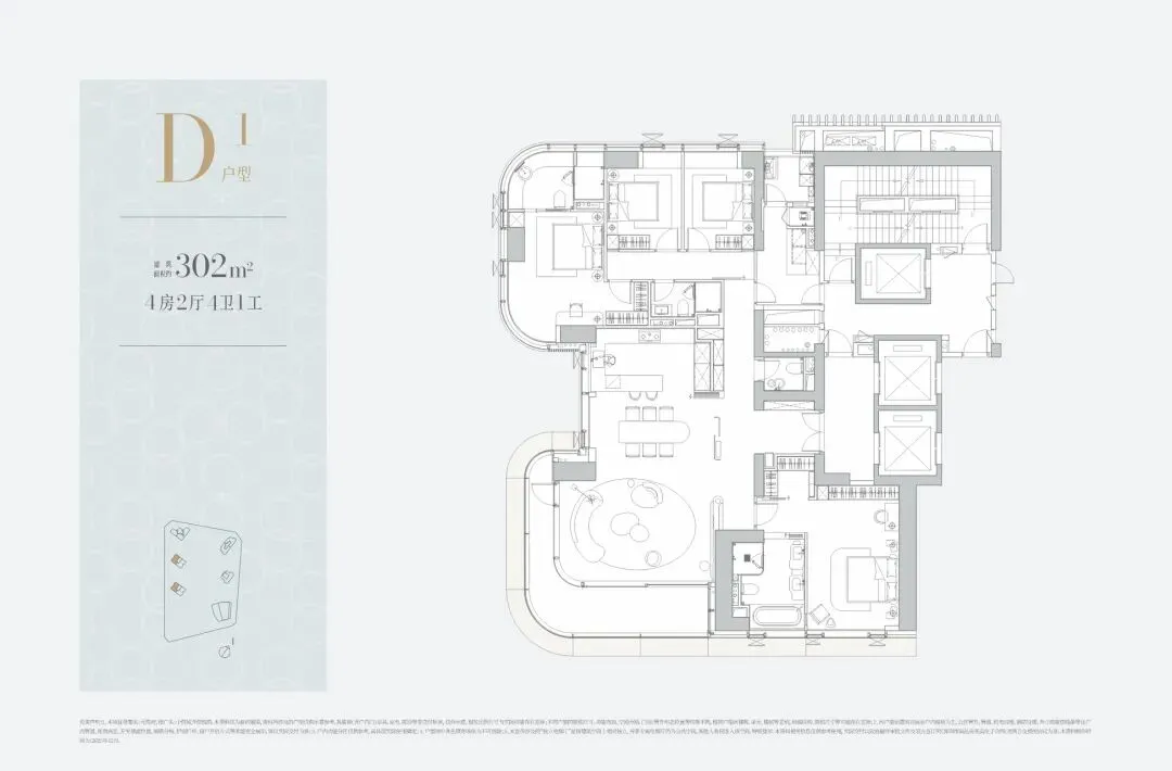 作为项目稀缺主力户型,302㎡采用3梯2户、4+1房设计,圈层纯粹。前批次开盘2小时即告罄,本次加推更是错过不再!