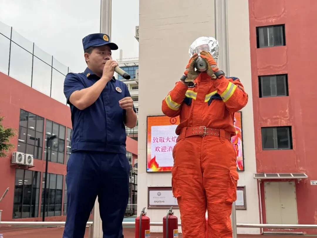活动伊始,师生代表对莅临我校的南布消防指战员表示了热烈欢迎。操场上,“火焰蓝”制服沉稳干练,“消防橙”战衣鲜亮醒目,两抹色彩交相辉映,成为校园里最令人安心的一道风景。