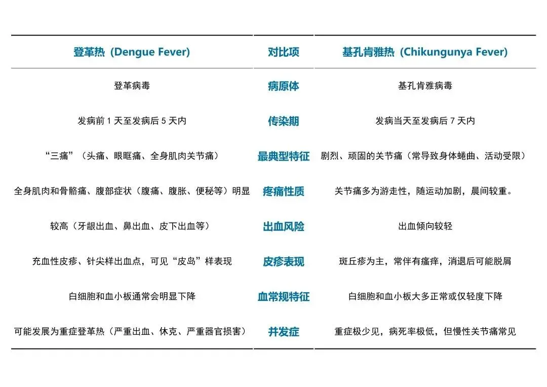 其中,登革热与基孔肯雅热症状相似,常见高烧、关节痛与皮疹,而后者的关节疼痛可能持续更久,甚至长达数周。寨卡病毒病虽然症状通常较轻,但孕妇一旦感染,可能对胎儿发育造成影响,同样不容忽视。如近期曾前往相关疾病流行地区,出现发热、关节痛、皮疹等症状,请一定立即就医。