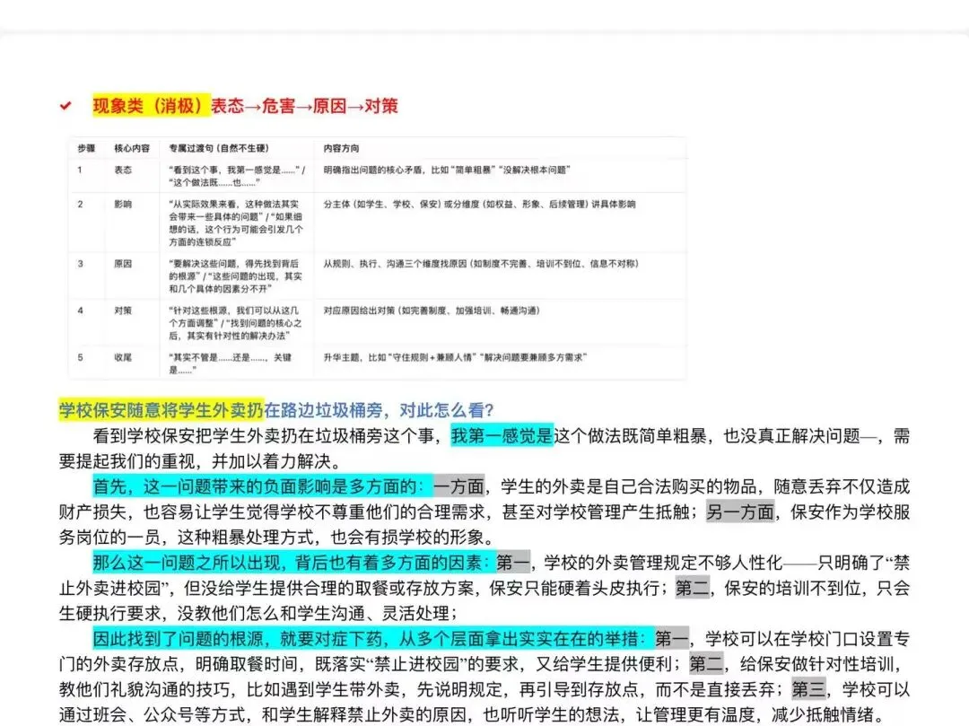 考试之前,高顿还安排老师每天回炉,老师一对一讲解,指出表达卡顿、逻辑混乱、内容空洞这些问题,针对性极强。