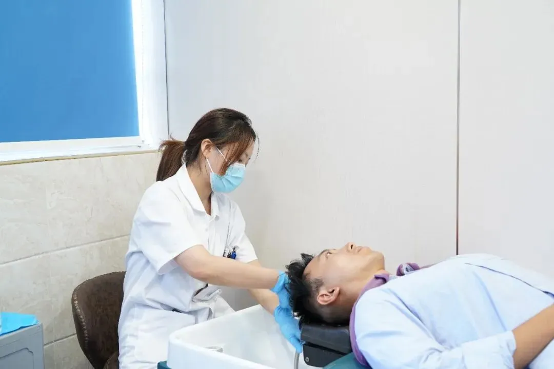 伤口护理:术后24小时种植区会出现微小血痂,不要用手抠,此时毛囊尚未固定。后枕部取发区轻微渗血可用无菌纱布轻压。术后1周内通常需回院清洗血痂,不宜自行操作。