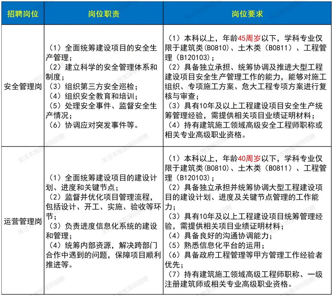 招聘安全管理岗、运营管理岗,一共2名,主要负责政府投资重大工程项目的安全管理、运营管理工作,实行聘期管理和协议年薪,本次招聘岗位用工方式为劳务派遣,具体要求如下图所示