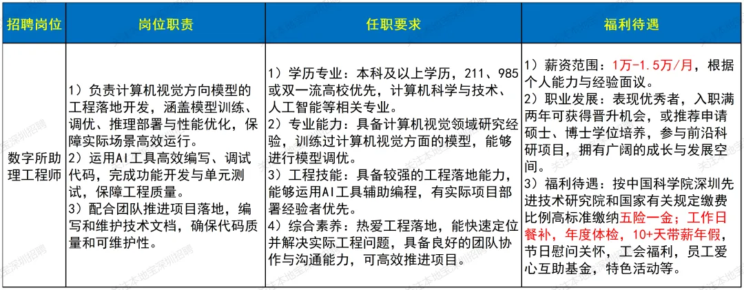 ✅招聘岗位:数字所助理工程师,具体要求及薪资待遇如下图所示