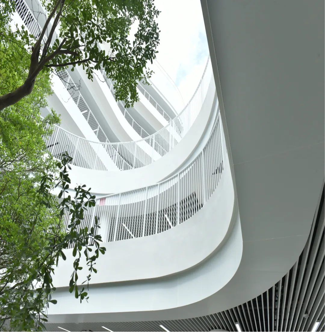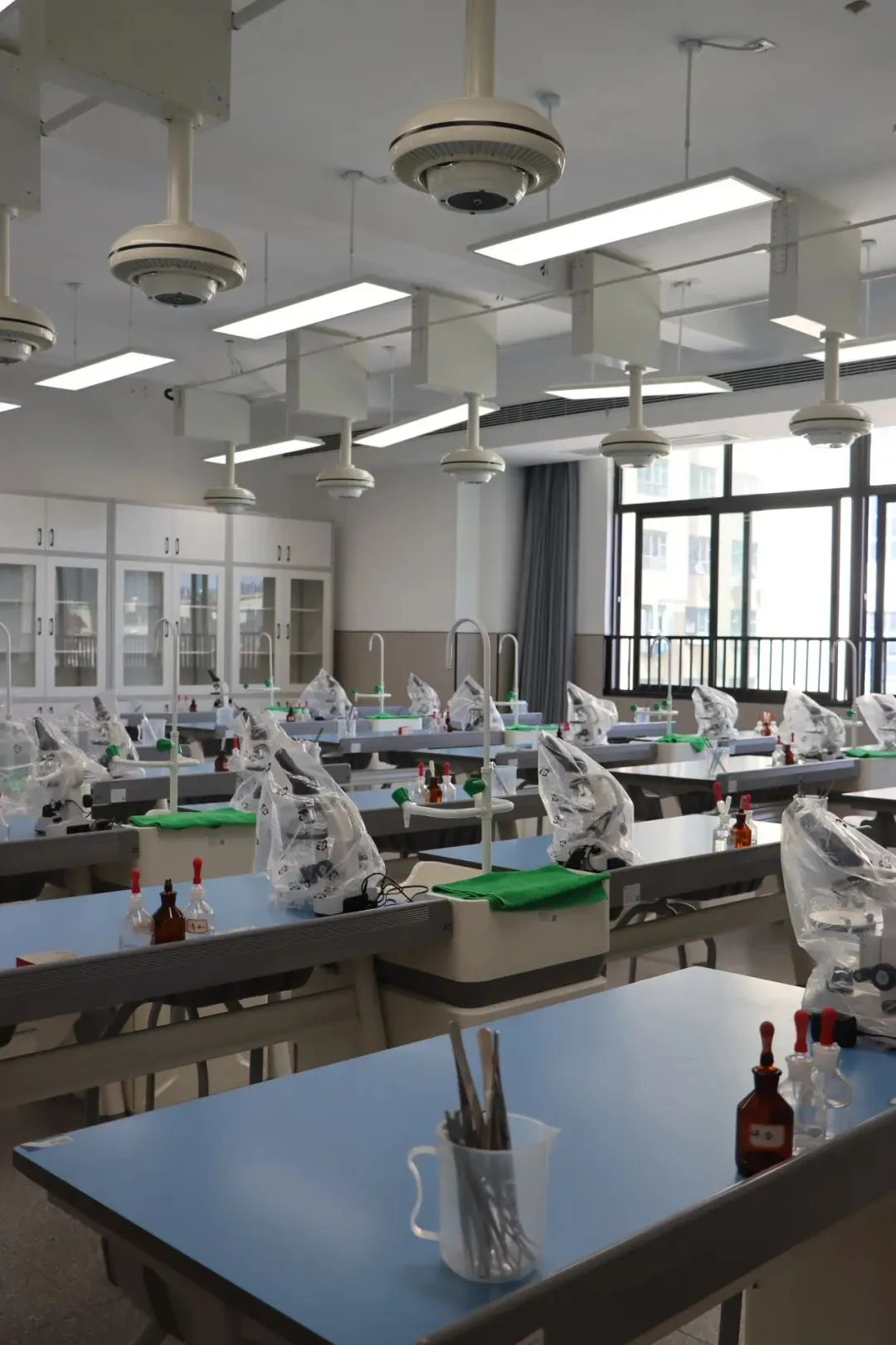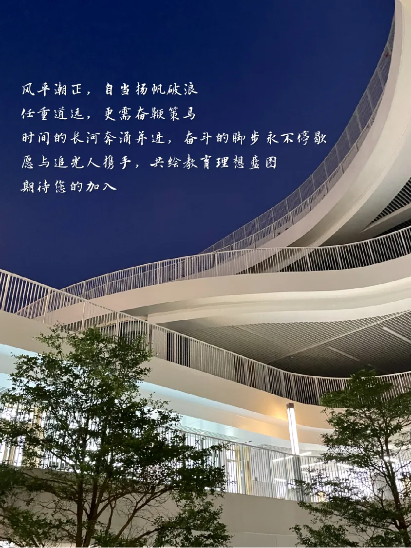 以“绿色光明、生态教育”为设计主旨,学校将传统文化底蕴与现代建筑美学深度融合,下沉庭院与空中花园相映成趣,为学生打造了兼具自然气息与人文氛围的学习生活空间。学校占地面积约1.8万平方米,总建筑面积约4.2万平方米,设计办学规模为36个教学班,其中小学24个班级,初中12个班级。校园环境优美,设施齐全,包括高标准的图书馆、体育馆、多功能厅等场馆,以及音乐、美术、科创等学科功能室,满足学生个性化成长需求。尤为突出的是,依托深理工在科研设施、学术与师资资源上的优势,学校科创功能室与深理工相关实验研究室(所)形成资源联动,为学生开展早期科研启蒙提供了优质软硬件支撑。