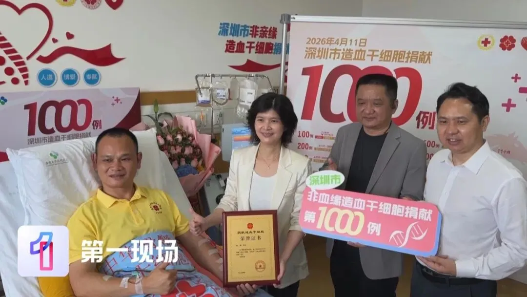 今天上午,深圳市非血缘造血干细胞捐献达到1000例,每一次成功捐献,都意味着又有一条生命点亮了重生的希望。