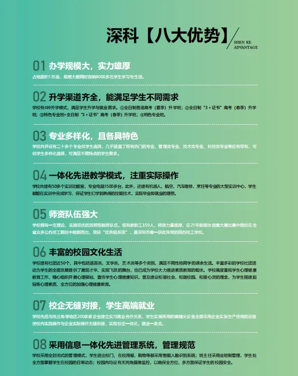 深圳市深科技工学校 2017 年获批,是深圳人社局主管的全日制民办技校,设光明、宝安沙井两校区,总占地 185 亩,在校生超 5000 人。