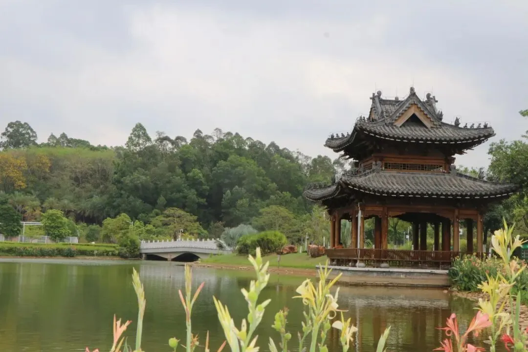 走进深北莫,沿着中心湖漫步,湖边凉亭是歇脚、观景的绝佳位置。
