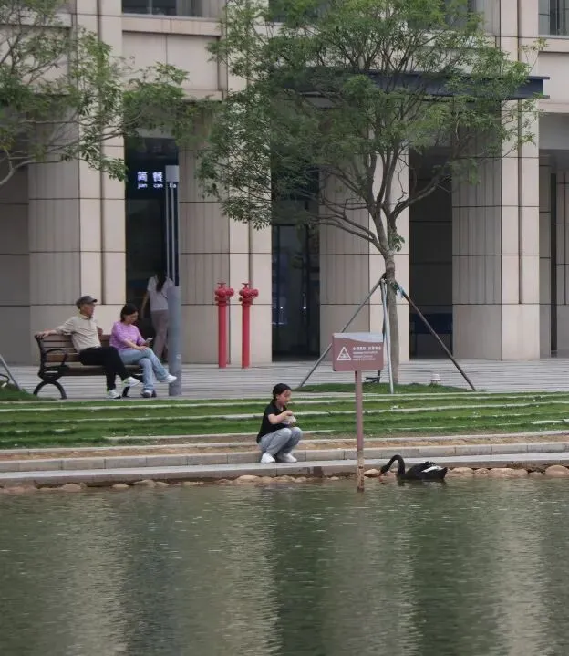 校园中心湖是娃的最爱打卡点!湖里住着温顺的黑天鹅和成群锦鲤,准备好面包屑、青菜叶,就能近距离投喂。