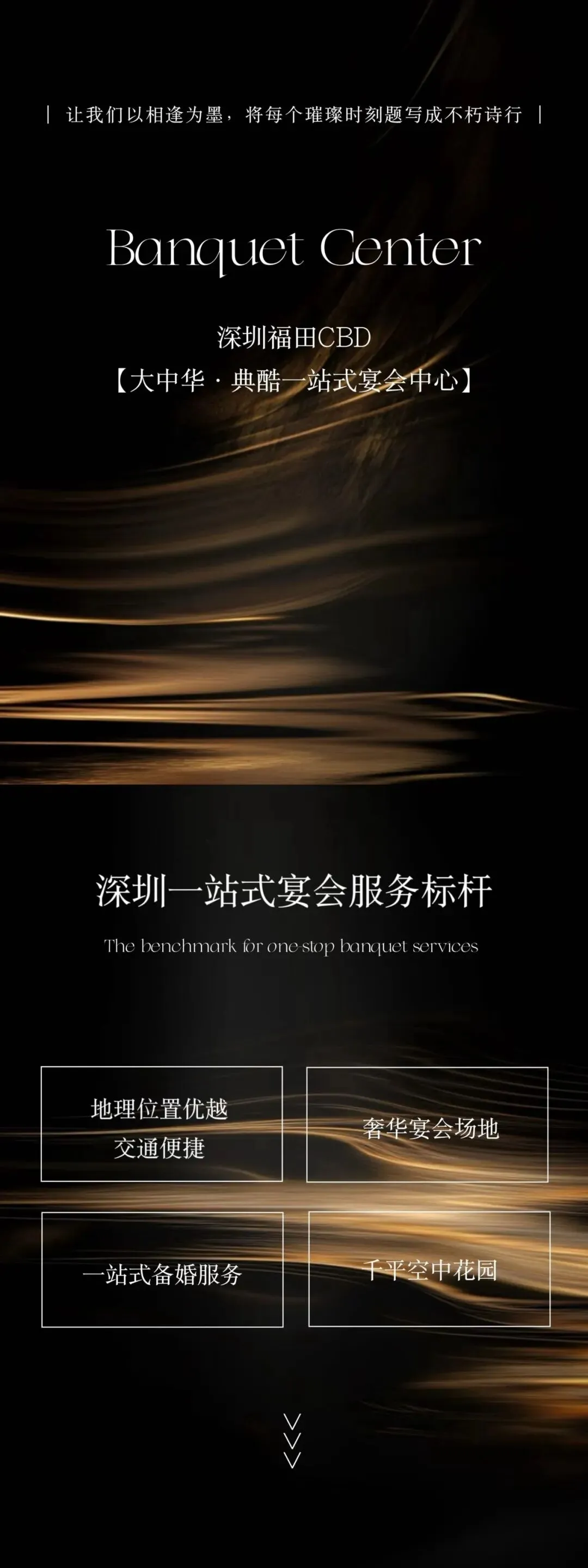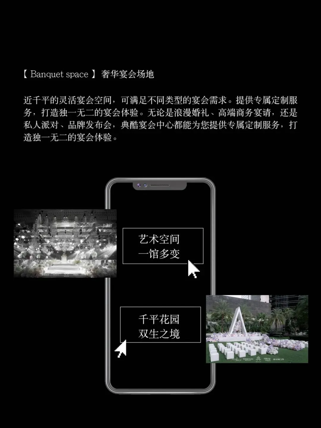 大中华·典酷一站式宴会中心,千平户外空中花园、奢华艺术空间,一馆多变,满足各种宴会需求。