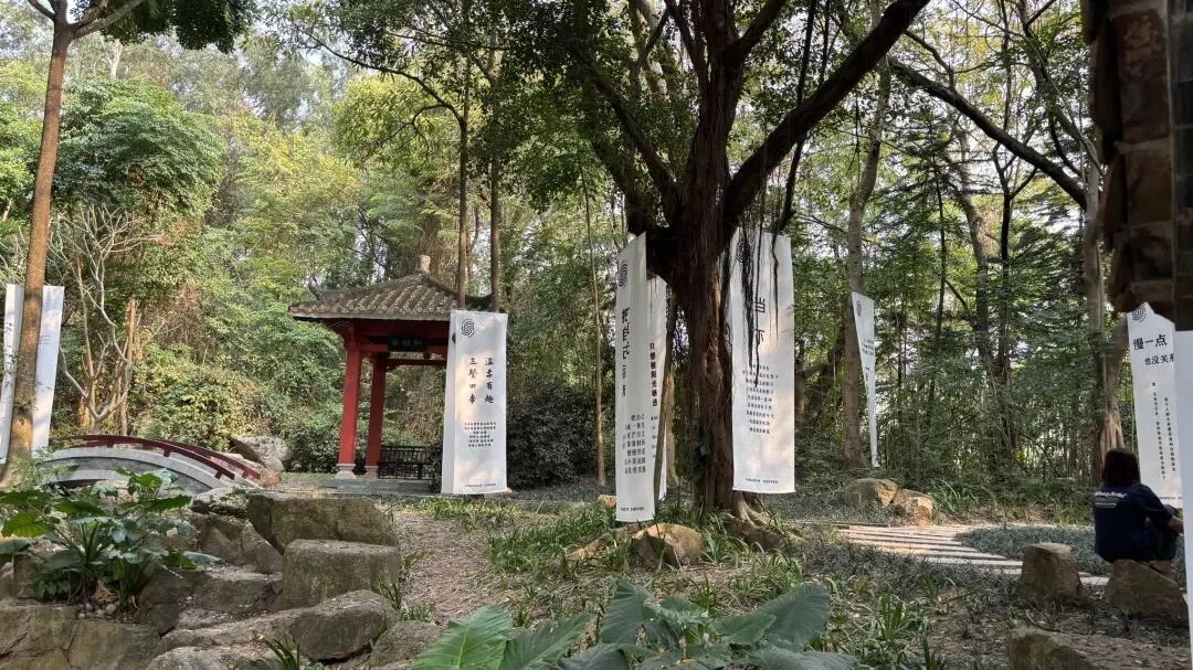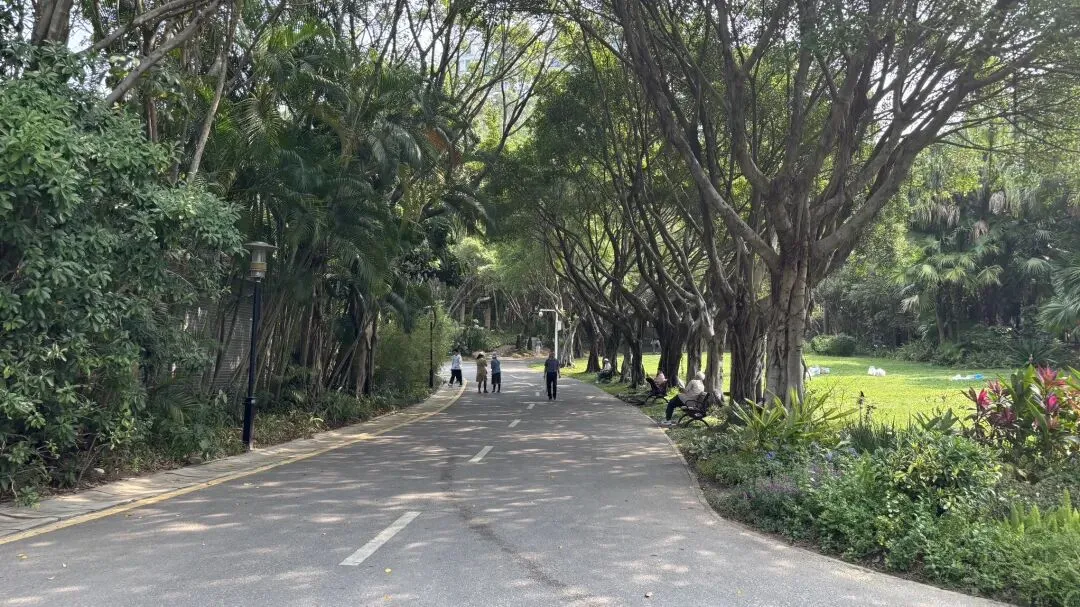 竹子林一路,这条路看着是不是很长?如果你站在那里,我肯定会为你留下最美的印象。竹盛花园,是个老小区,就在园博园旁边,地理位置优越。我们现在沿着紫竹六道走,这儿有一路公交M126,一站路就到红树林。走着这条街,发现福田区好多政府机构在这里,如香蜜湖户政服务中心,办税服务厅等。转到竹子林七路,看到乐福购物广场,在这里吃了早餐。这里有两个老小区,一个是越众小区,一个是金众小区,非常多栋楼。我们转到竹子林四路上,看到了博园东。难道这就是园博园的东门?我们进去看看。在这条路上,有在深圳基建工程兵的宣传。基建工程兵是深圳最早的拓荒者,向他们致敬。看到眼前的那个建筑了吗?就是深圳市气象局的所在了。果然,这里就可以进园博园,且是园博园的东门。园博园分了东区和西区两大区域,景色各异。园博园里面环境是很好的,周围的居民朋友真是有福。这个绿字刻在石头上有什么特别的含义吗?据说池塘对面的那座建筑上的三角梅就是大家打卡的景点,待会我们走进了去瞧瞧。碰到咖啡,总是要驻足一下,从指间到在心间的指间咖啡,在宝芝园。喜欢这里面的一些文字内容:保持热爱,允许一切发生,也允许自己偶尔停下来。人生缓缓,自有答案。允许自己是自己,允许别人是别人。走过宝芝园,来到汇芳园。这里有很多国家领导人手植树。汇芳园最经典的美景来了,就是这株三角梅,随风摇曳的时候真的好看。还搭着古韵,亲眼目睹才明白美的真谛。我们往西区方向走,可以走隧道。隧道里有经典的风景画。这个建筑熟悉吗?岭南重镇,南山古韵。这里就是西门啦。公园里各种姿态的人们,看报的,看手机,发呆的,走路的。我们这一圈大概走了7公里多,从园博园的南门停车场,到东门,北门,西门,再到南门,走走看看,也是挺自在的。深圳园博园,有一部份在改造中,但还是可以来看看的。你要来走走看看吗?深圳园博园全称深圳国际园林花卉博览园,是福田区超美的免费中式园林公园,其位于福田区深南大道竹子林西段。