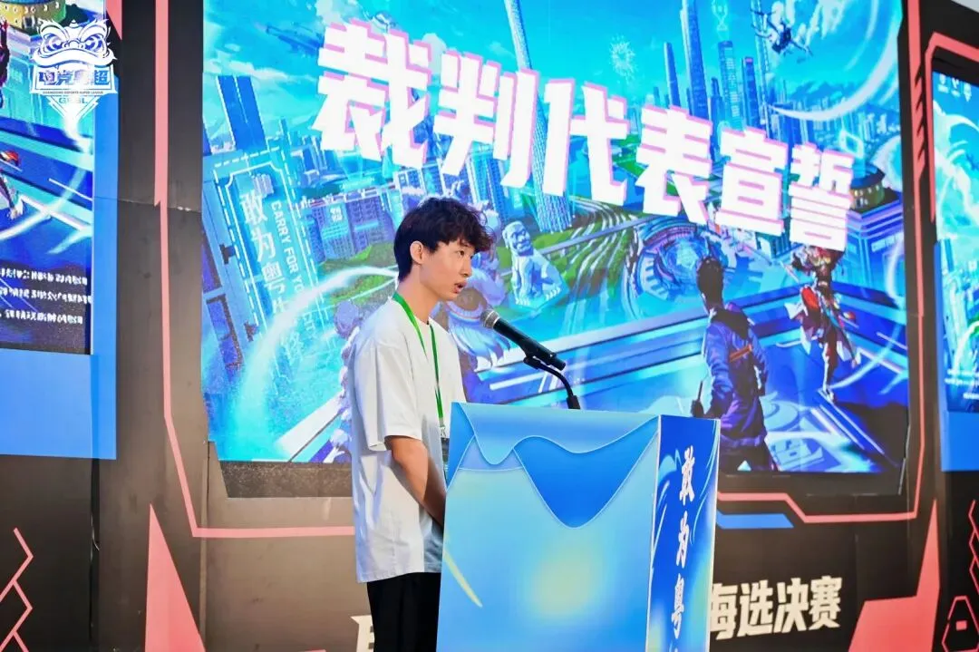 为保障赛事专业公正,活动现场举行运动员代表与裁判员代表宣誓环节。运动员承诺全力以赴、尊重对手、公平竞赛;裁判员承诺恪守准则、公正执裁,共同守护纯粹的电竞体育精神。
