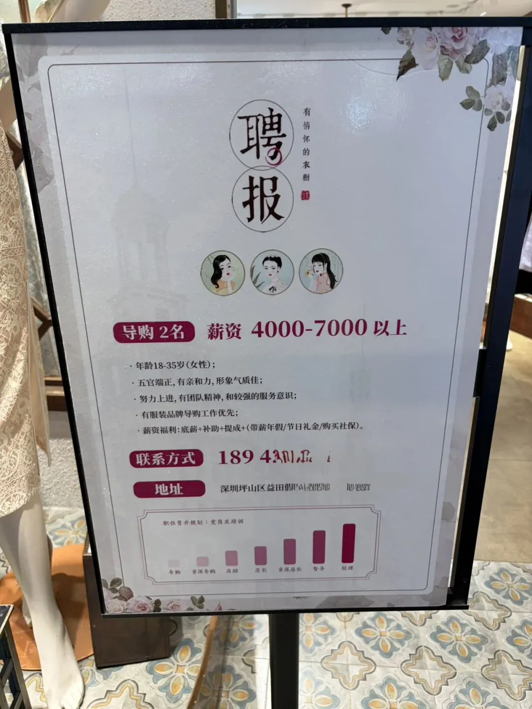 往福田罗湖口岸商场找,那里工资会好一些,有些包吃包住。