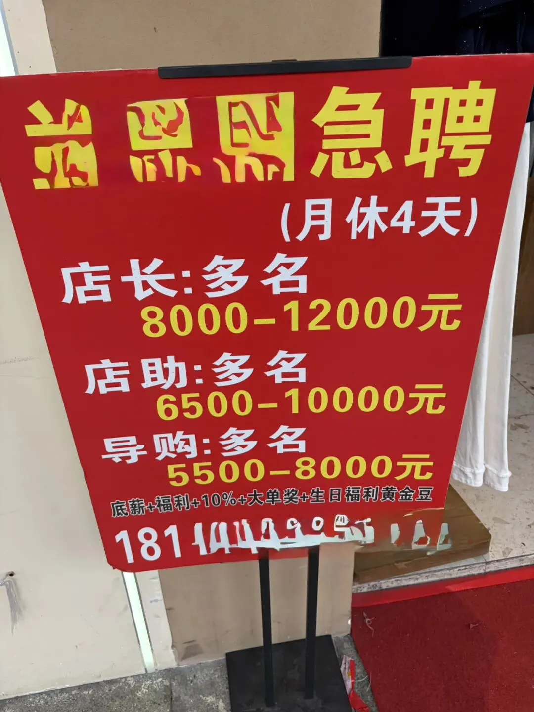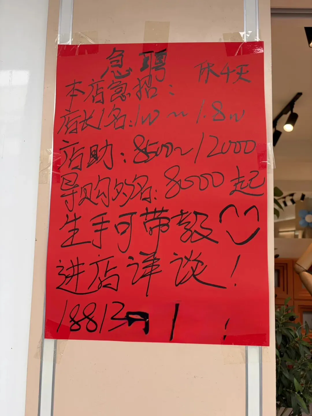 需要联系方式,请留言1或者告知我对哪个工作感兴趣,私信不回复。这条街道招聘广告挺多建议就近上班遇到好老板就做久一点,遇到不好的老板就赶紧跑。