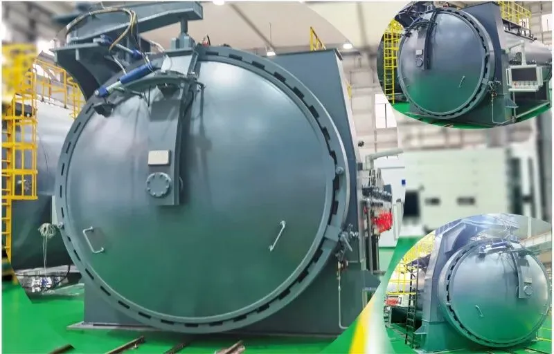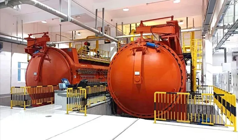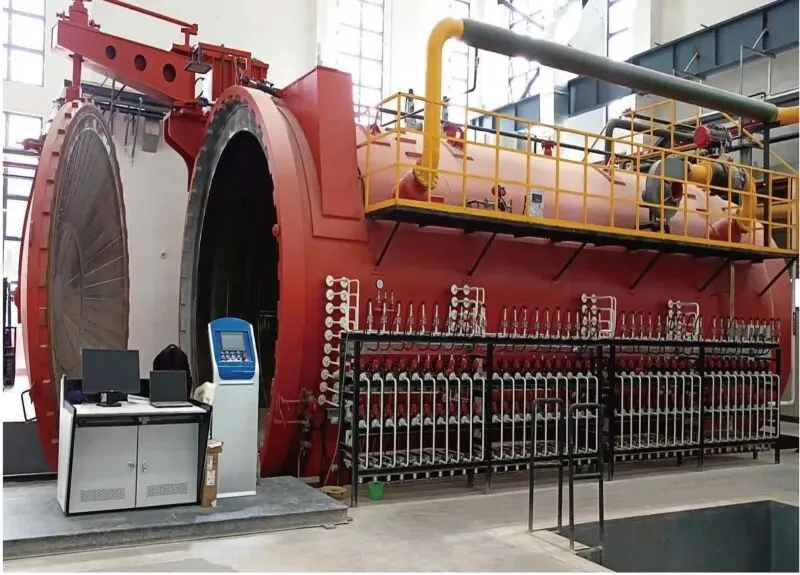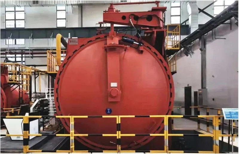 大型热压罐参考选型规格:1)有效固化直径:φ3500~4200mm;2)有效固化长度:根据产品、工装及生产节拍选型;3)工作压力:0.8~5.0MPa;4)工作温度:200~500℃;5)真空路数: 根据需求(真空泵2用1 备);6)热电偶路数:指定或满足AMS2750F检测需求;7)控制系统:冗余上位机+PLC+智能仪表逻辑控制,标配记录仪、落地操作台等;8)控温精度: ≤±1℃;9)温度均匀性: ≤±2℃;10)升降温速率:0~6℃;11)升降压速率:0 ~ 0.1MPa/min;12)冷却方式:水冷却;13)加热方式:电热管或导热油;14)参考最小装机功率:750kW。