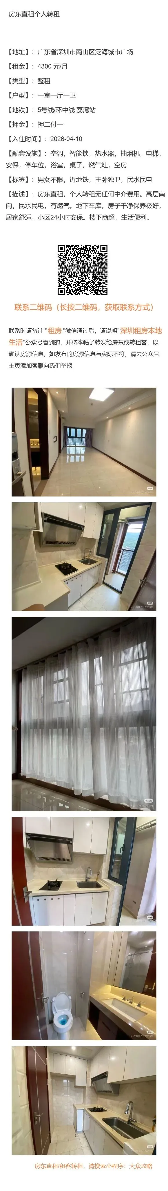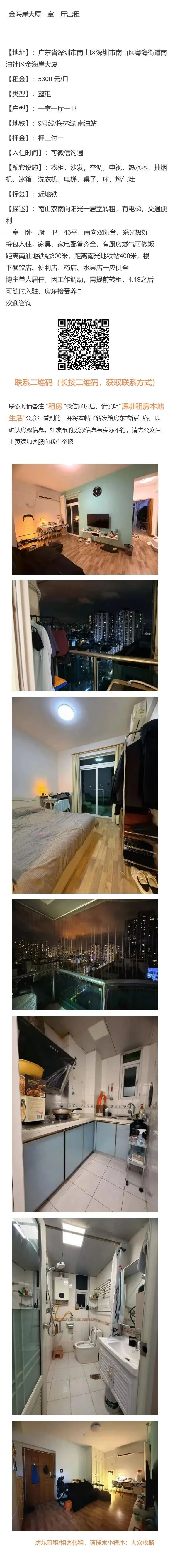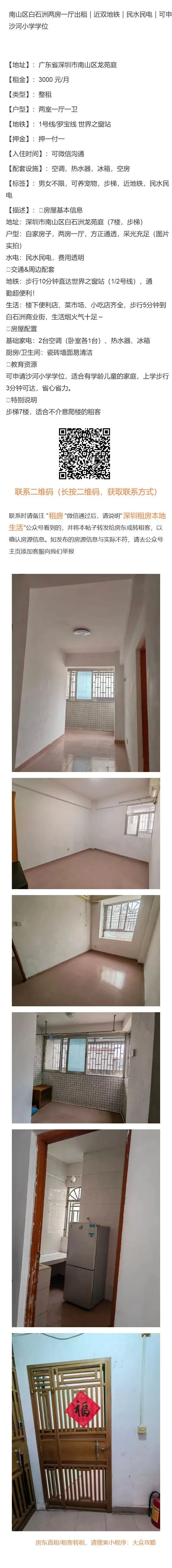 【深圳租房本地生活:免责申明】以上内容受用户委托发布,谢绝转载。房源信息的真实性、合法性由提供者负责,本公众号不声明或保证内容之正确性和可靠性,深圳租房需谨慎,请先核实出租人身份,仔细阅读租房合同,切勿轻易转账、交订金等,房屋出租过程中产生的一切问题,与本公众号无关。【深圳租房本地生活:特别申明】深圳租房本地生活没有任何线下业务人员,请勿轻信冒认我司线下工作人员及电话沟通人员,我司目前唯一对外沟通窗口为公众号主页客服微信:Hey_Beijinger