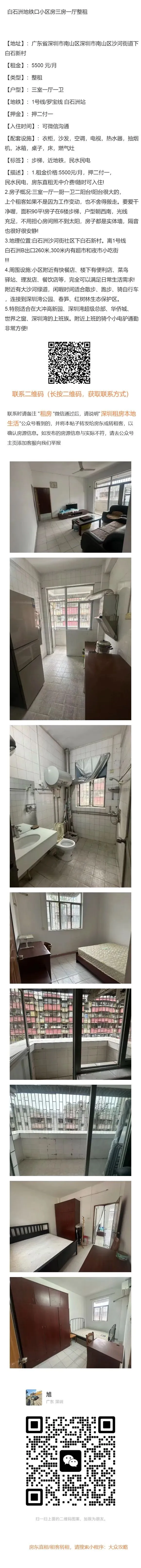 >>> 南山区 1号线/罗宝线 白石洲站 三室一厅整租5500元/月