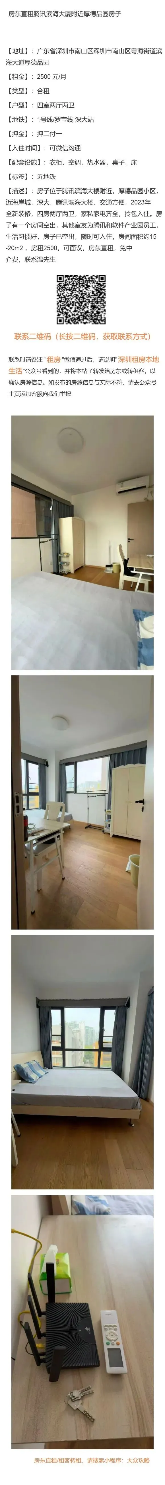 房东直租腾讯滨海大厦附近厚德品园房子
