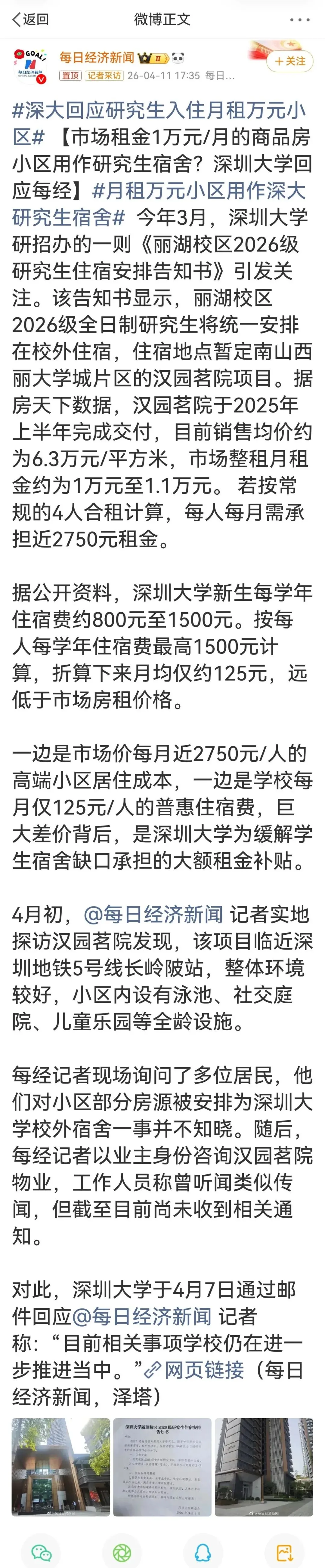 深圳大学26级研究生入住月租万元小区引热议上热搜!大家觉得贵吗?