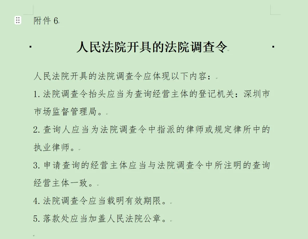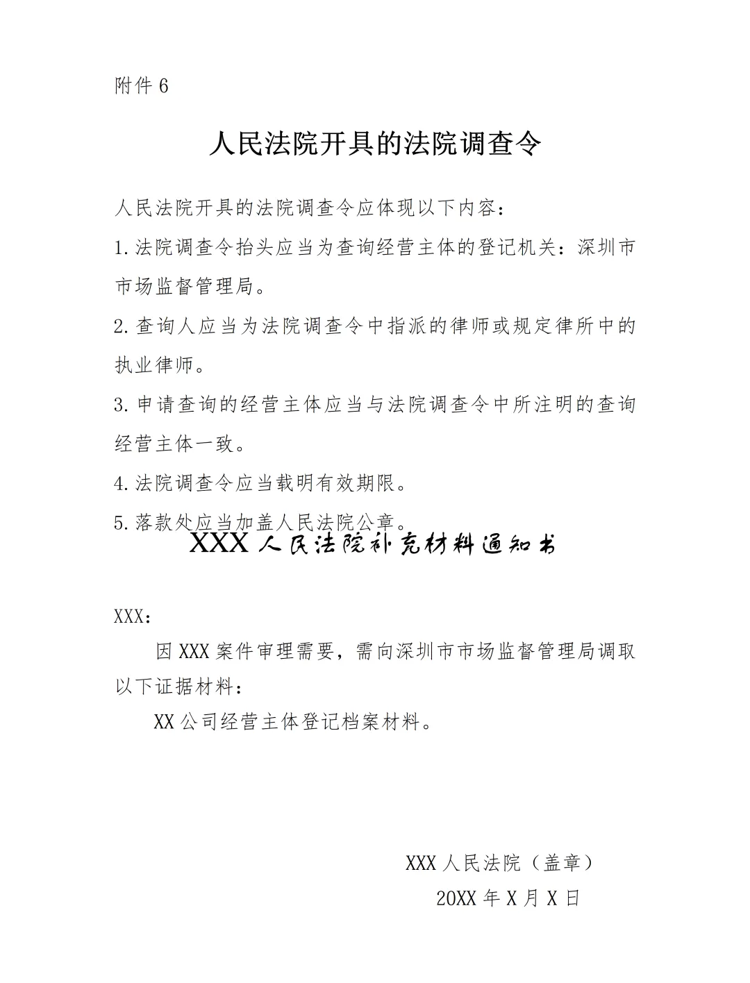 ⑤法院出具的调查令或补充材料通知书(参考样例详见附件6)。