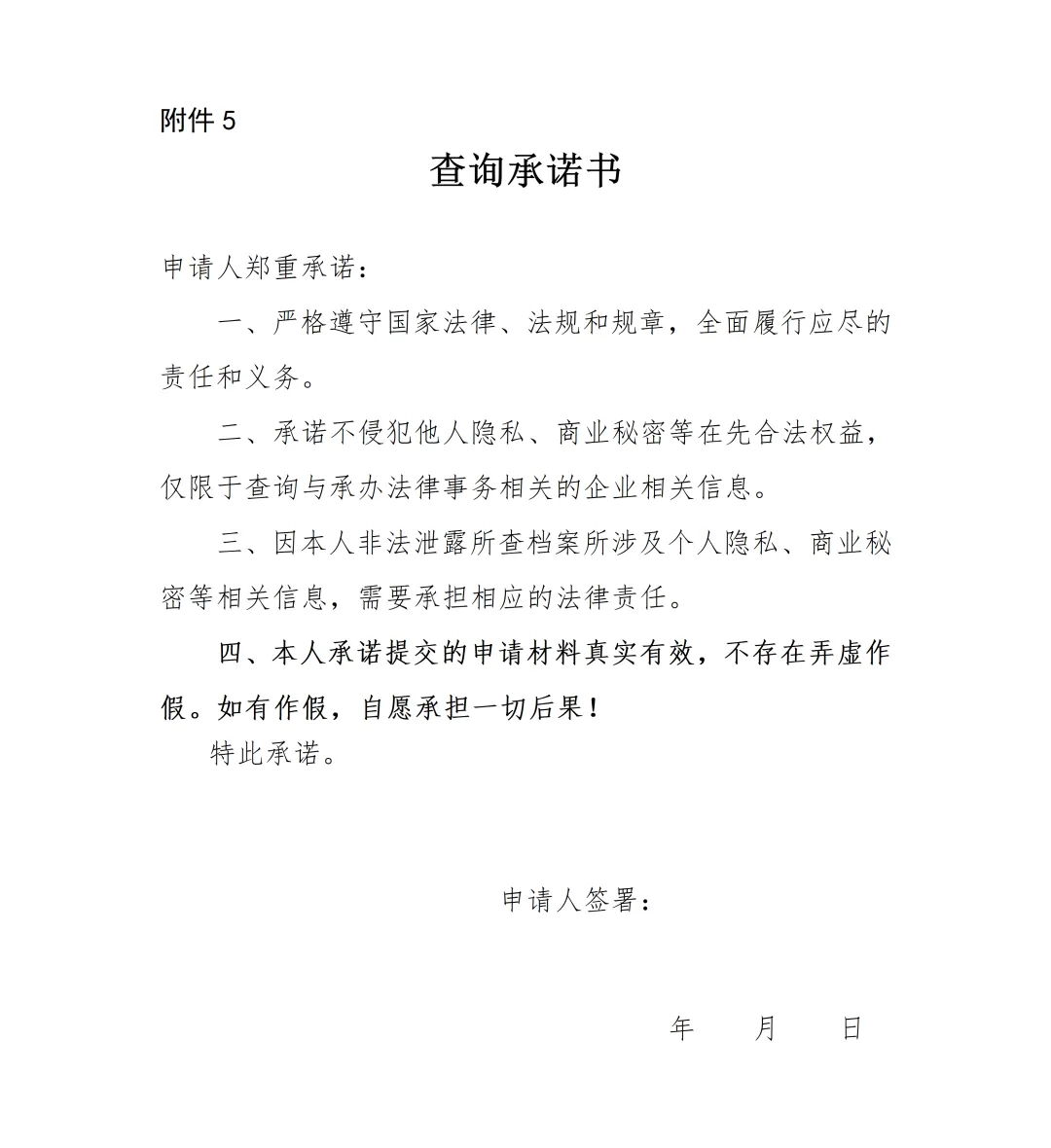 ③查询承诺书(律师亲笔签字,详见附件5 );