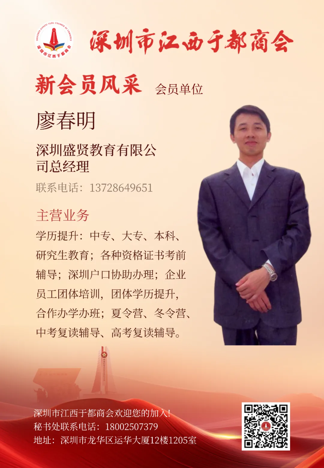 >【新会员风采】会员:深圳盛贤教育有限公司总经理廖春明