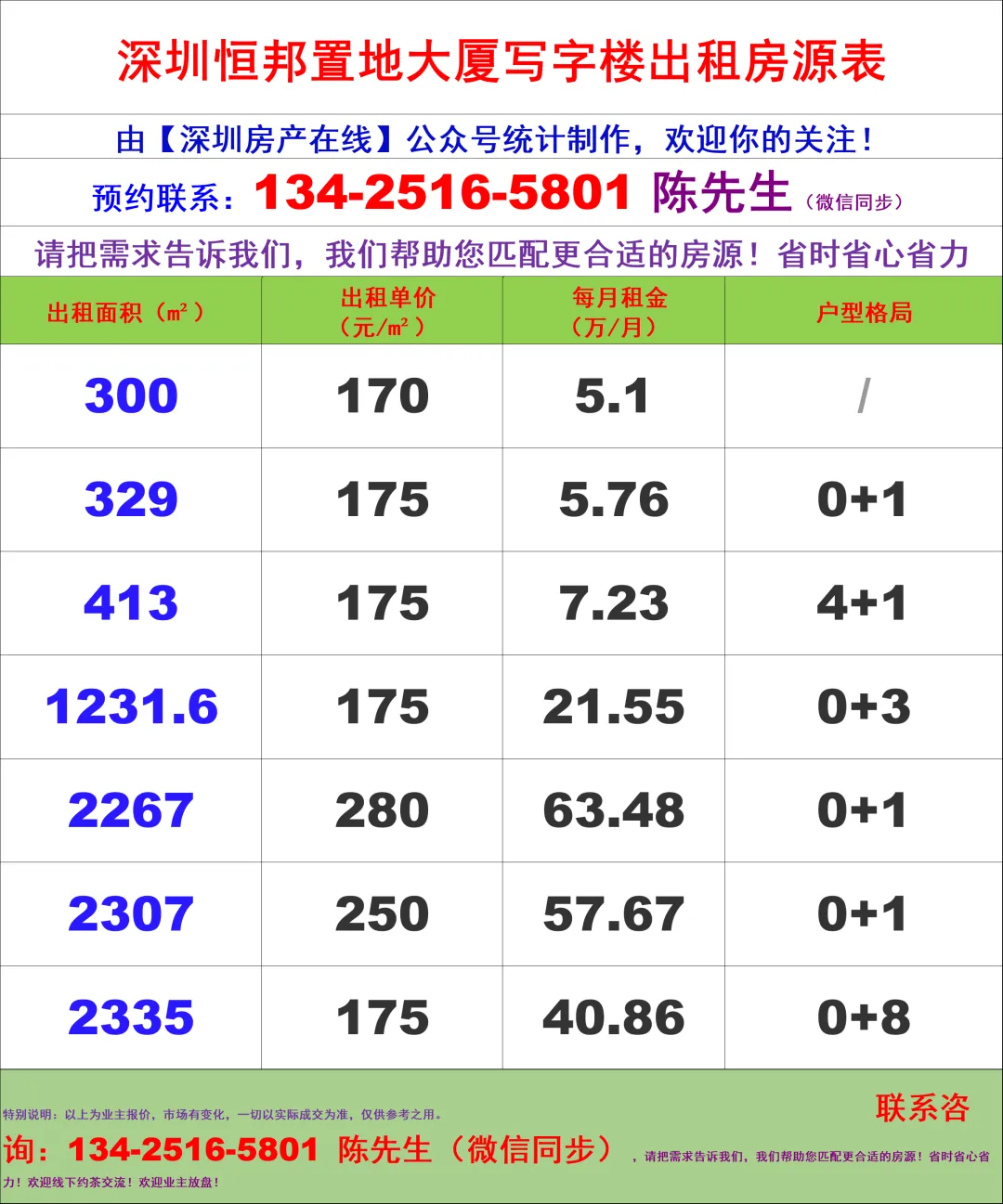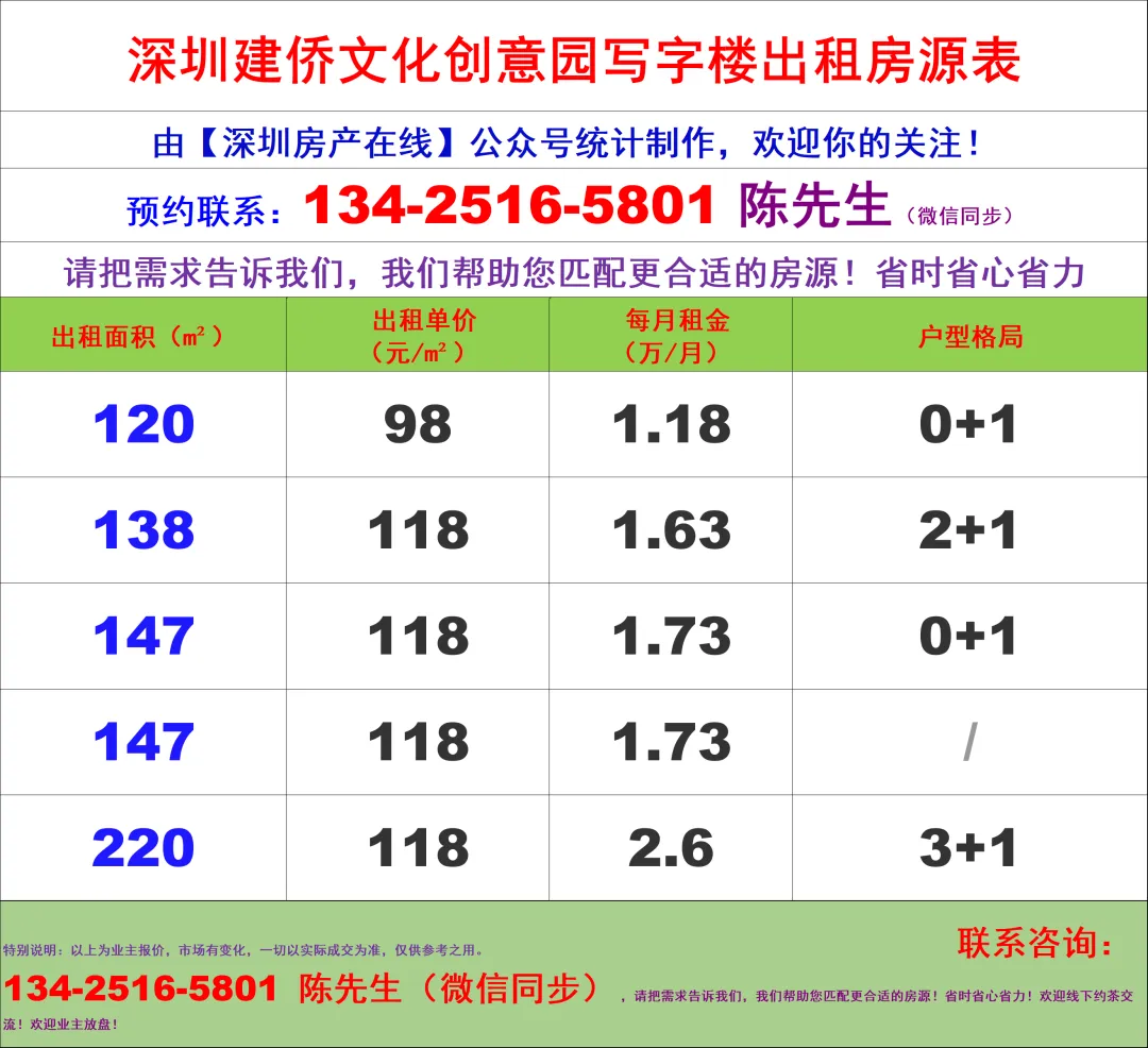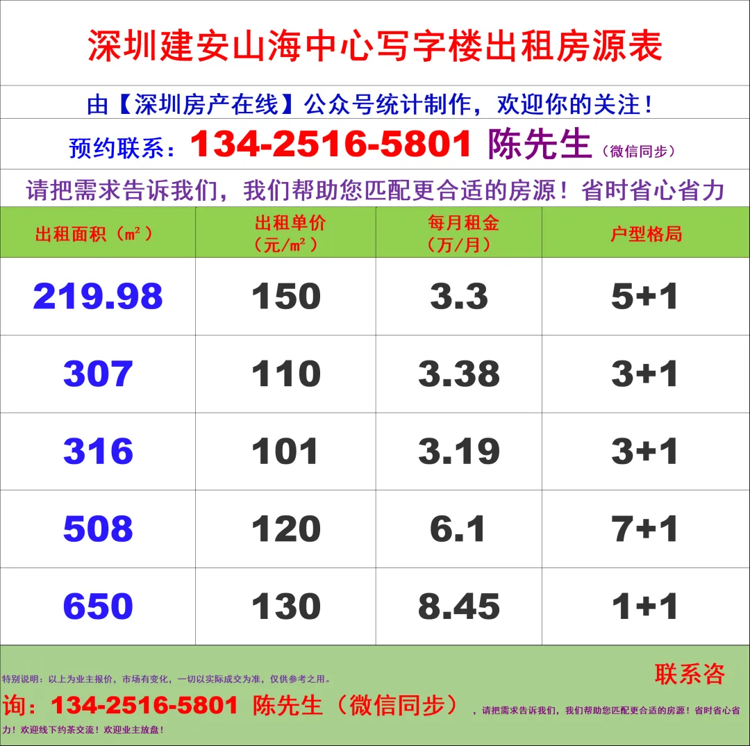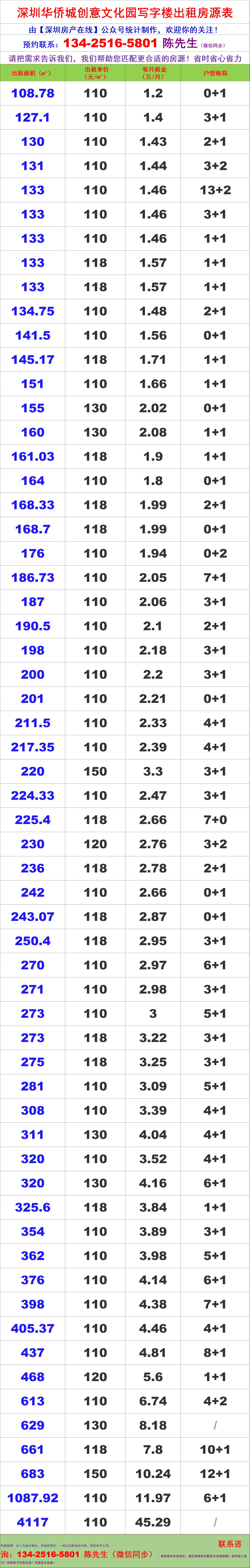 【深圳房产在线】陈经理写字楼租售团队:134-2516-5801 (微信同步)