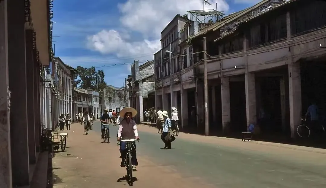图中这个咔咔作响的三轮车,八十年代初在深圳街头可太多了,前头是细条铁棍编的框架,车筐被来回推磨得发亮,椭圆铁牌子上印着“海口制造”四个字,顶上的座垫是黑色摇摇欲坠的海绵包皮,边上总能揪出点棉絮来,那会儿不少人拿它拉货跑生意,早上一车咸鱼,中午一车纺织,到了晚上摇着铃叮叮当当,街口就有一大把勒紧烟袋嘴等活的老头。小时候也爱爬上去撒欢,坐在后车板上让大人推着跑,脚下乱踩,轮胎吱吱作响,风一吹袖管带着油渍味儿,后来私家车出来多了,三轮车慢慢成了照片里的旧东西。