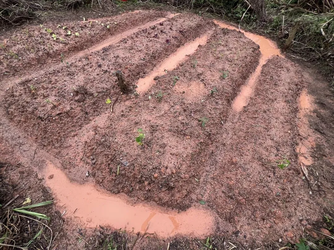 4月4日,下午3点过,雨终于小点了,我们准备打伞步行去看看菜地,张潮《幽梦影》里说“为花忧风雨”,我们现在“为菜忧风雨忧骄阳”。出门就没雨了,种下的10种菜都不错。