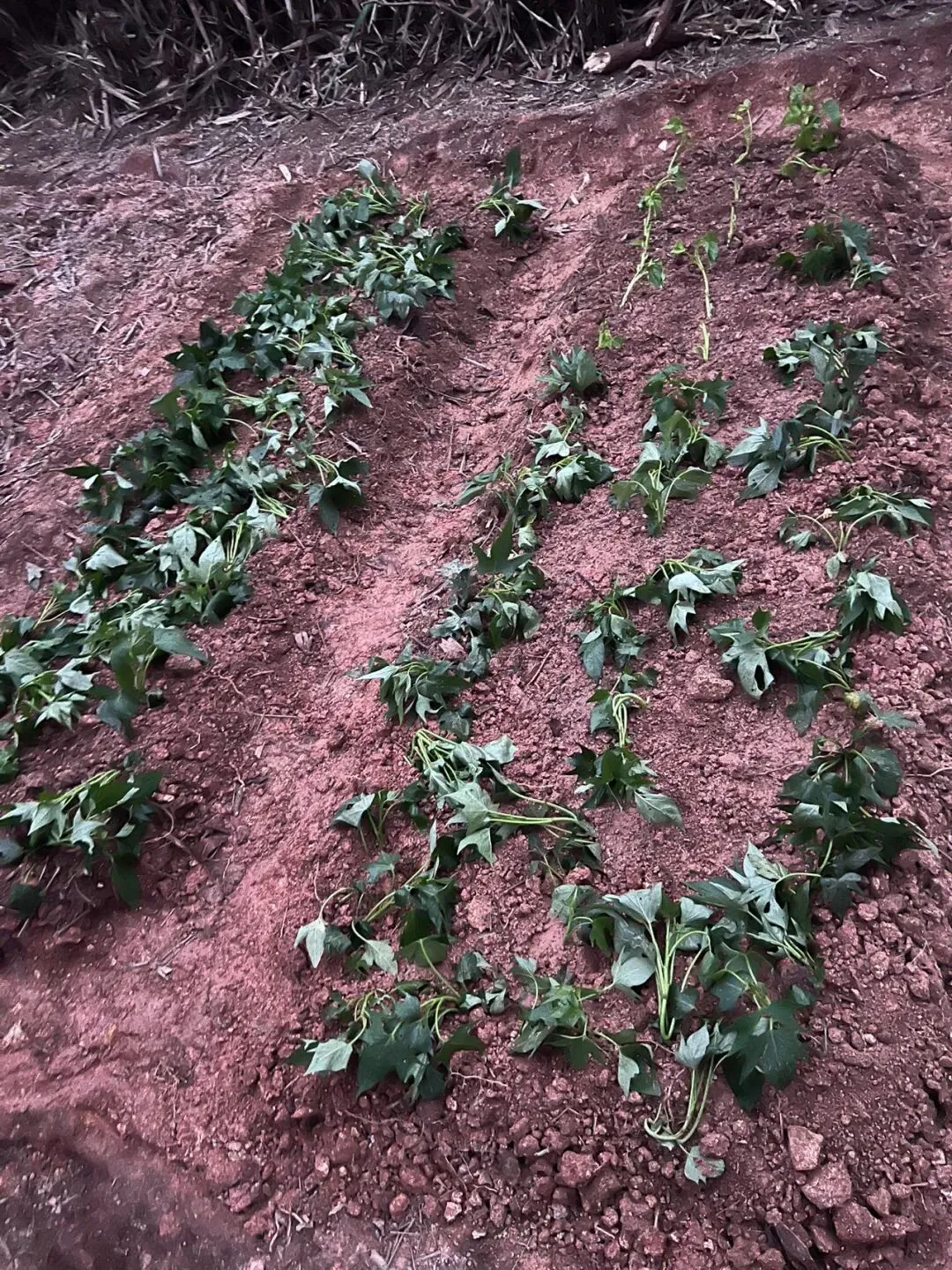 因为雨停了,搞姐又闲不住了,决定再去开一块地,我们随即侦察地形,迅速选定,立马开荒。草木茂盛,甚至还有木耳。