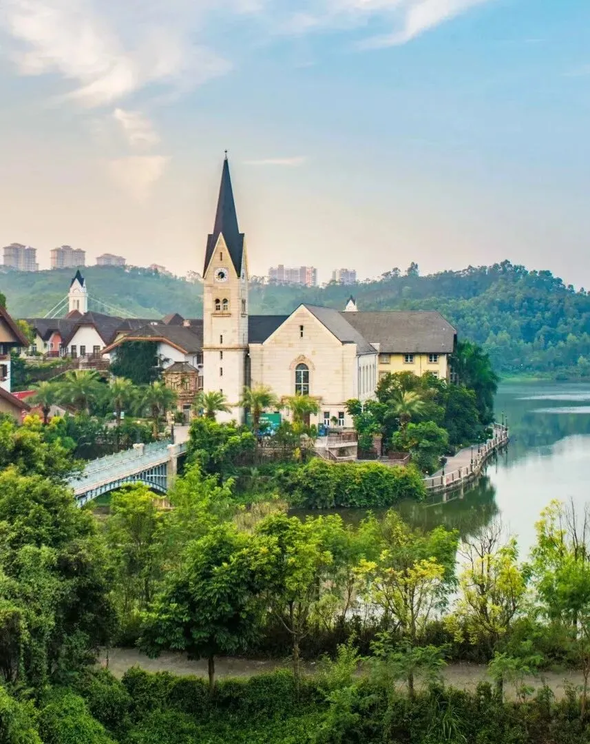 将奥地利哈施塔特村的建筑风情完美复刻到了岭南山水间
