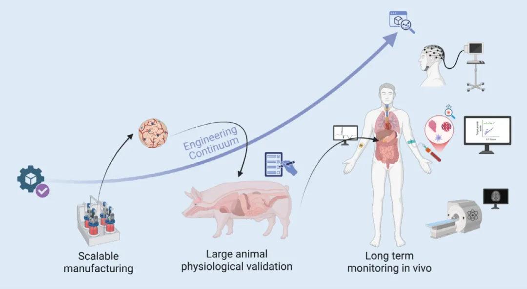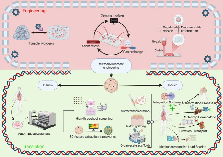 工程化引导的微环境调控驱动类器官构建,实现标准化体外转化工作流程,并支持体内治疗转化中的功能整合。实现临床可转化类器官疗法的技术路线图。