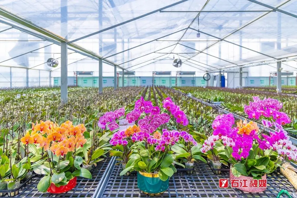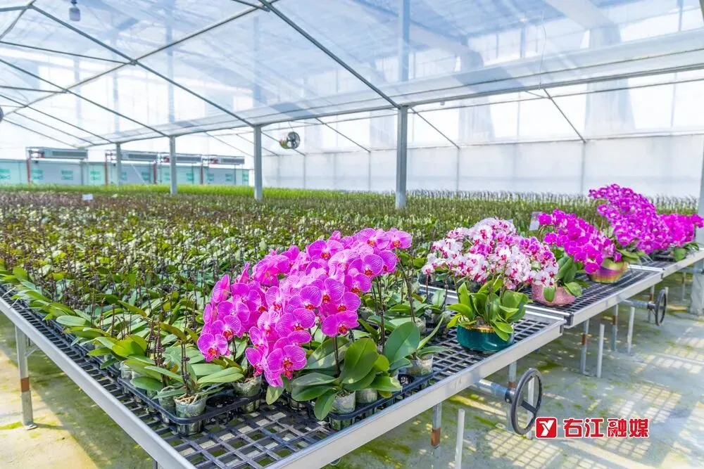 右江区四塘镇深圳小镇兰花基地项目位于百东新区北环路旁,毗邻深圳小镇易地扶贫搬迁安置点。项目总用地面积1.35万平方米,建筑面积5400平方米。在现代农业智能数控温室大棚内,一排排兰花整齐地排列着,处于最适宜的成长环境中,各色花朵竞相绽放,展现出一幅生机勃勃的美丽画卷。