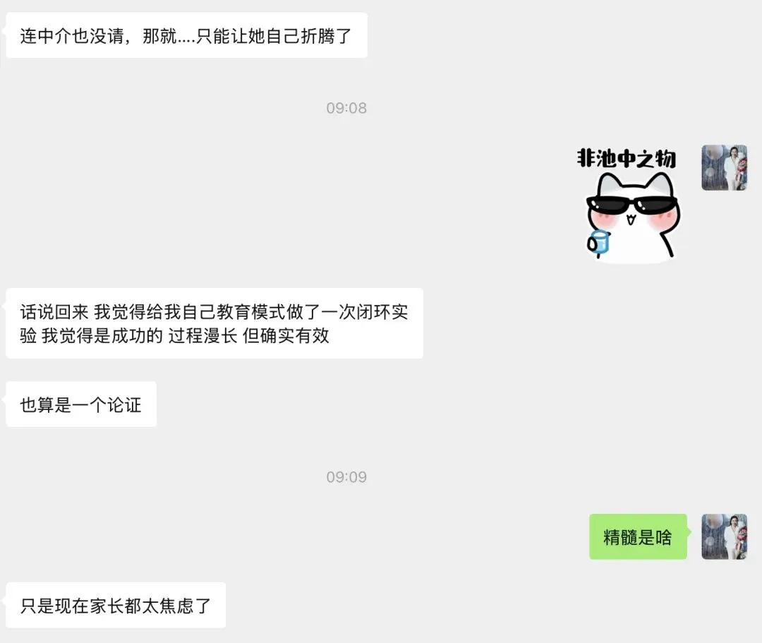 朋友说,我觉得给我自己教育模式做了一次闭环实验。我觉得是成功的。过程漫长,但确实有效。也算是一个论证。