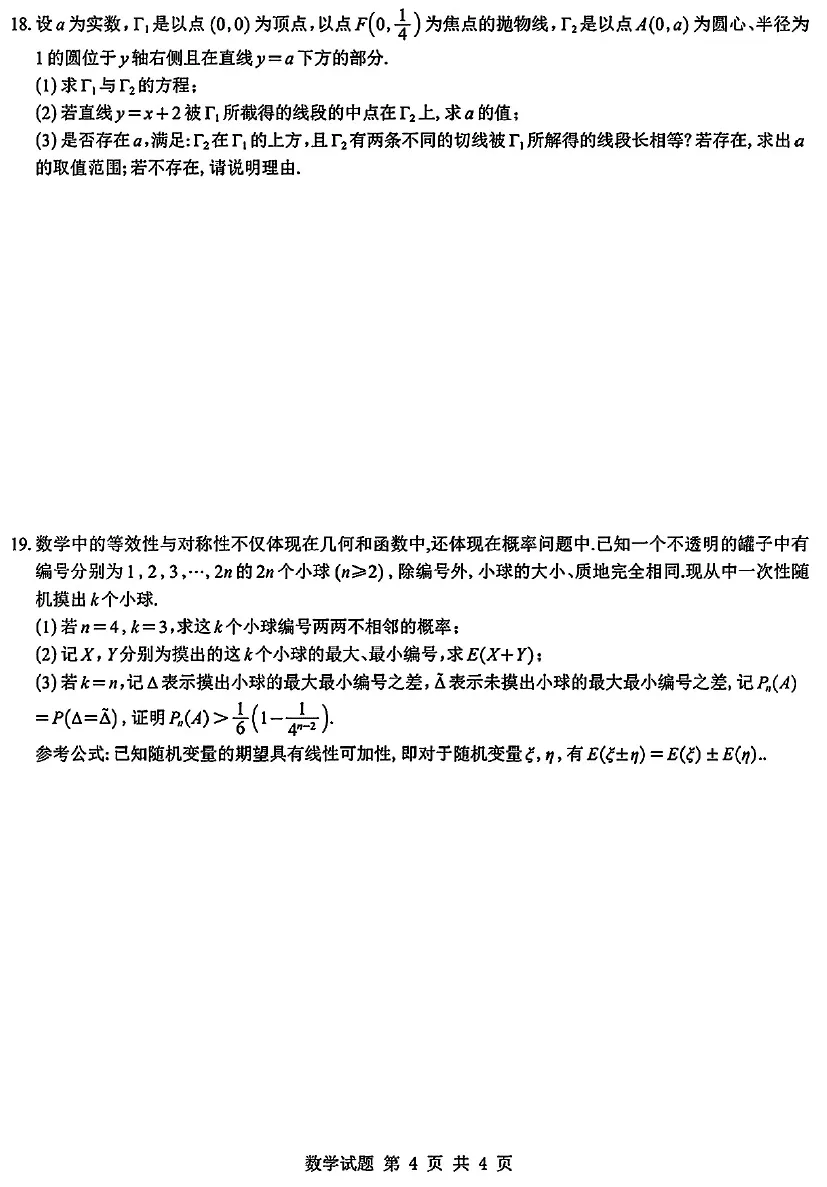 深圳中学2026届高三二轮二阶测试数学试题与参考答案