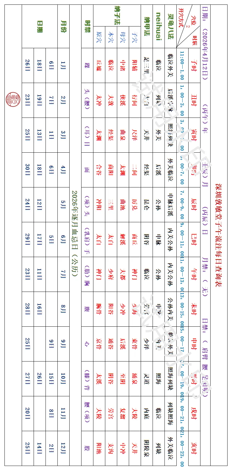 深圳敦敏堂《子午流注:今日开穴》 2026 4月12日