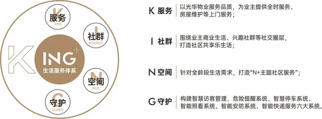 光华物业,金光华集团旗下子公司,24载专业物管经验沉淀,以前瞻视角为项目量身打造“king+”生活服务体系,赋予美好大城生活体验。
