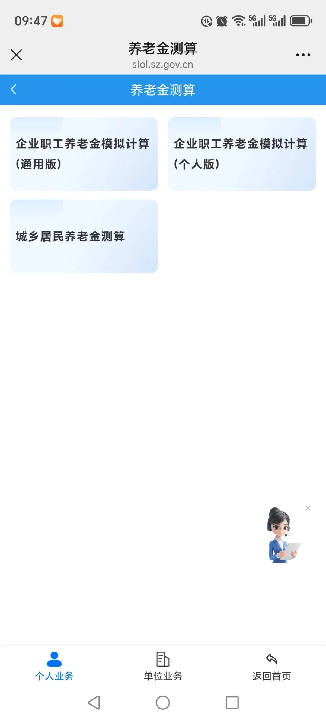 点击养老金测算。