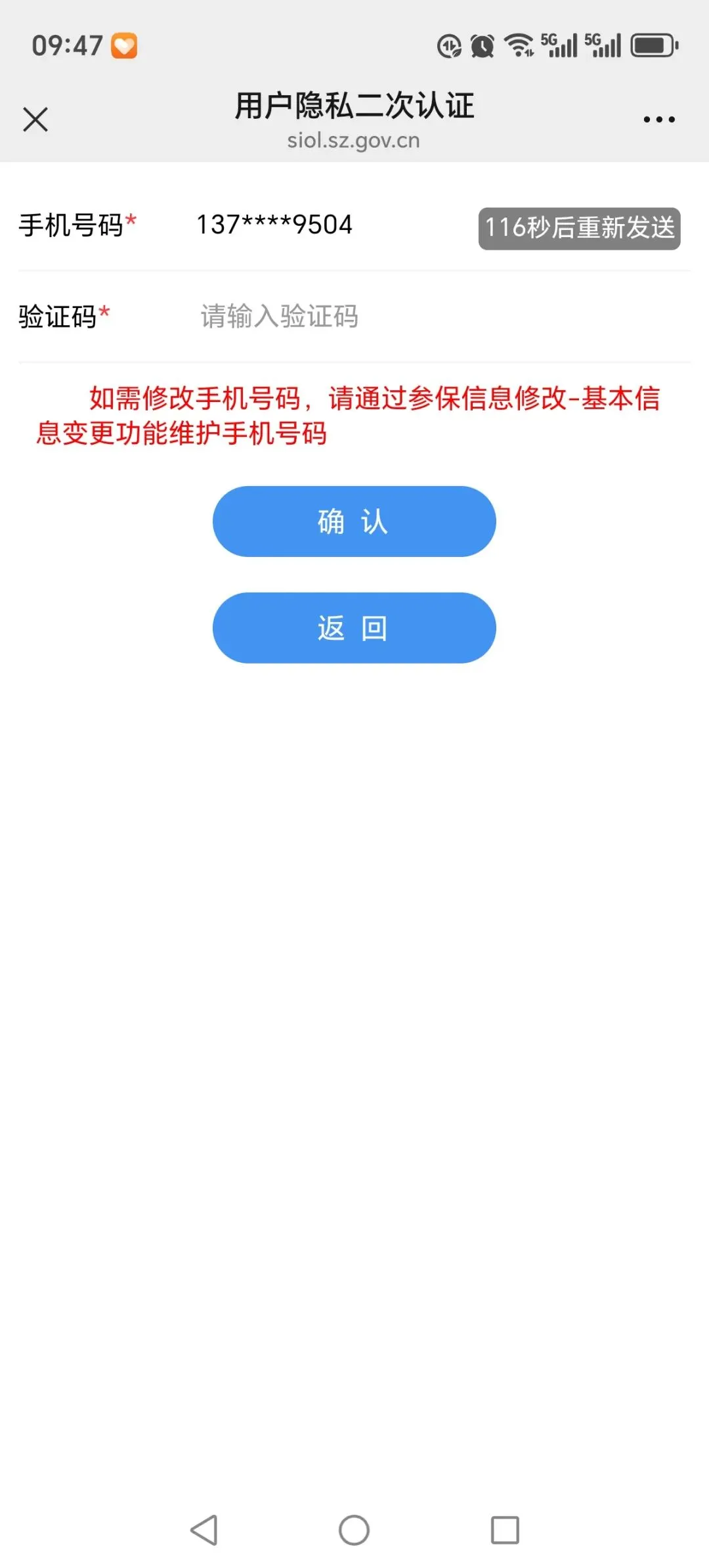 输入手机验证码。