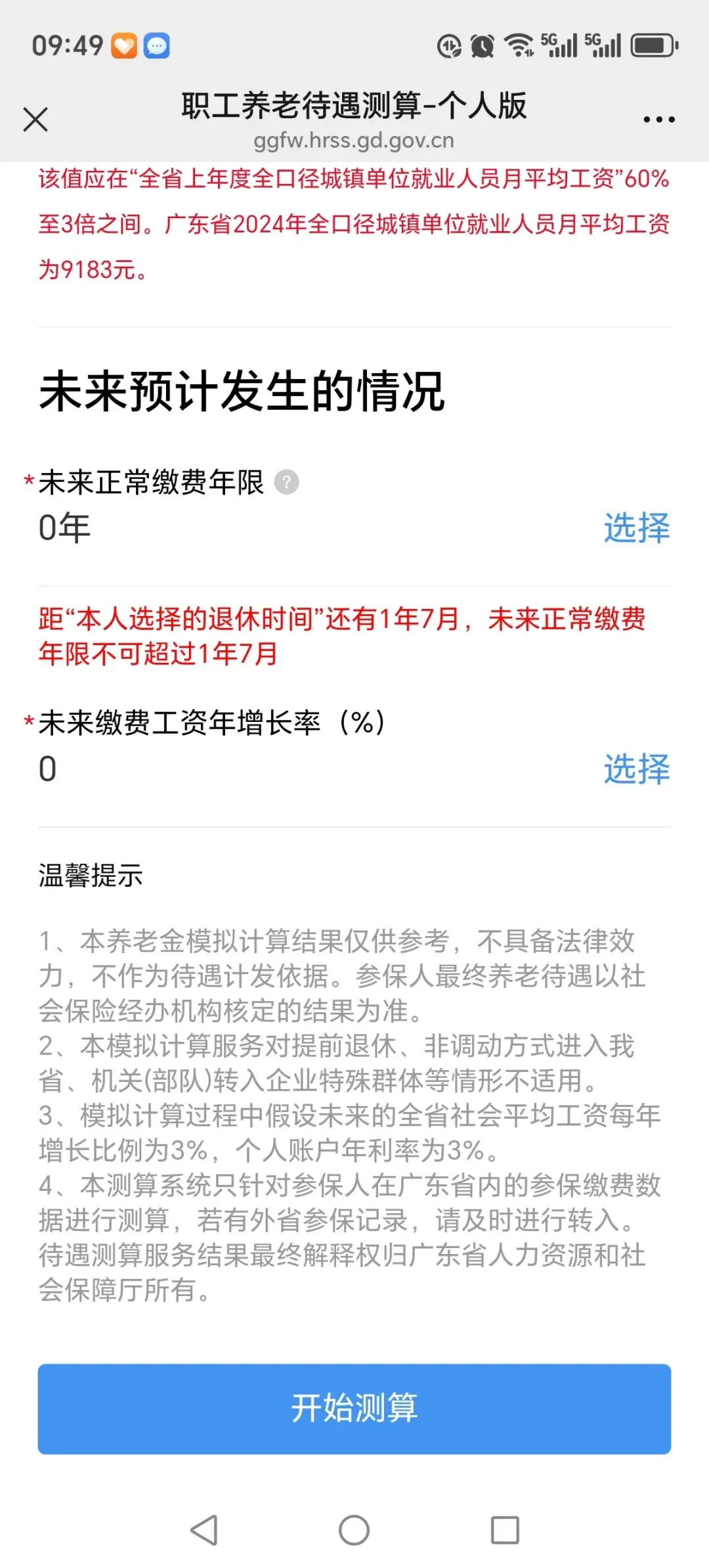 点击开始测算。