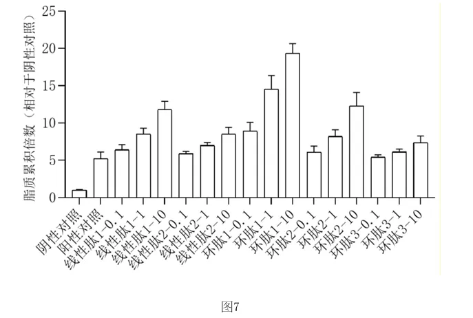 结果如图7所示,可以看到本发明的环肽1和环肽2在标准诱导方案的基础上,提供了额外的、强大的促脂肪生成信号。