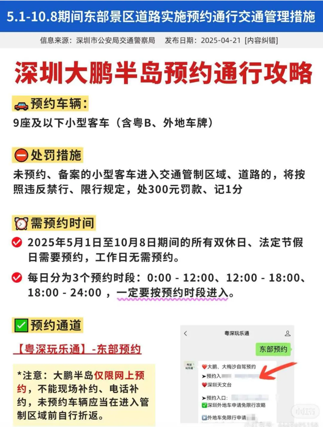 - 大鹏预约:五一假期大鹏半岛恢复预约通行,自驾记得提前通过“深圳交警”微信公众号预约
