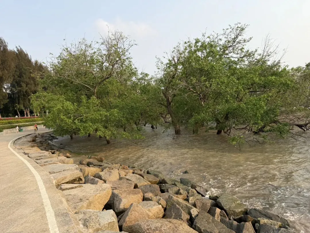 浪花拍打红树林、阳光照耀红树林、游人拍照红树林... ...