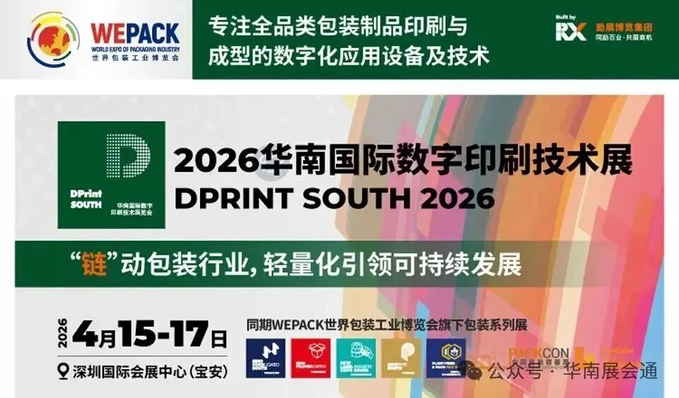 作为透视全球包装行业发展格局,洞见行业发展新趋势的业界盛会,WEPACK世界包装工业博览会旗下包装系列展之一2026华南国际数字印刷技术展将于2026年4月15-17日在深圳国际会展中心(宝安)举办。