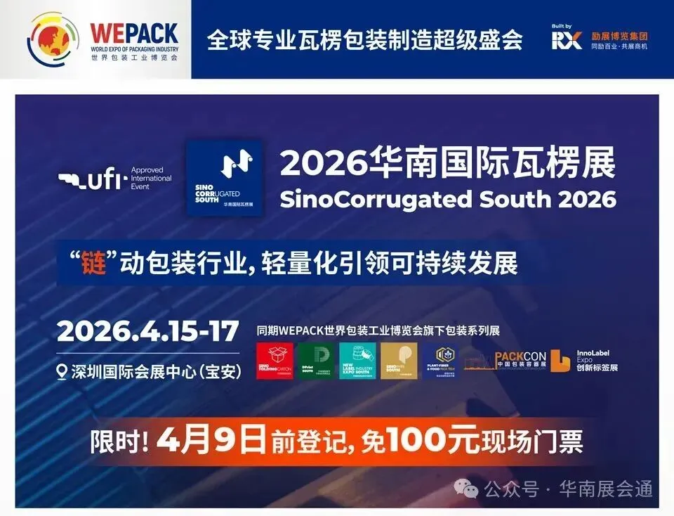 作为透视全球瓦楞行业发展格局,洞见行业发展新趋势的业界盛会,WEPACK世界包装工业博览会旗下包装系列展之一2026华南国际瓦楞展将于2026年4月15-17日在深圳国际会展中心(宝安)举办。
