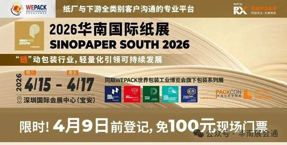 作为透视全球包装行业发展格局,洞见行业发展新趋势的业界盛会,WEPACK世界包装工业博览会旗下包装系列展之一2026华南国际纸展将于2026年4月15-17日在深圳国际会展中心(宝安)举办。