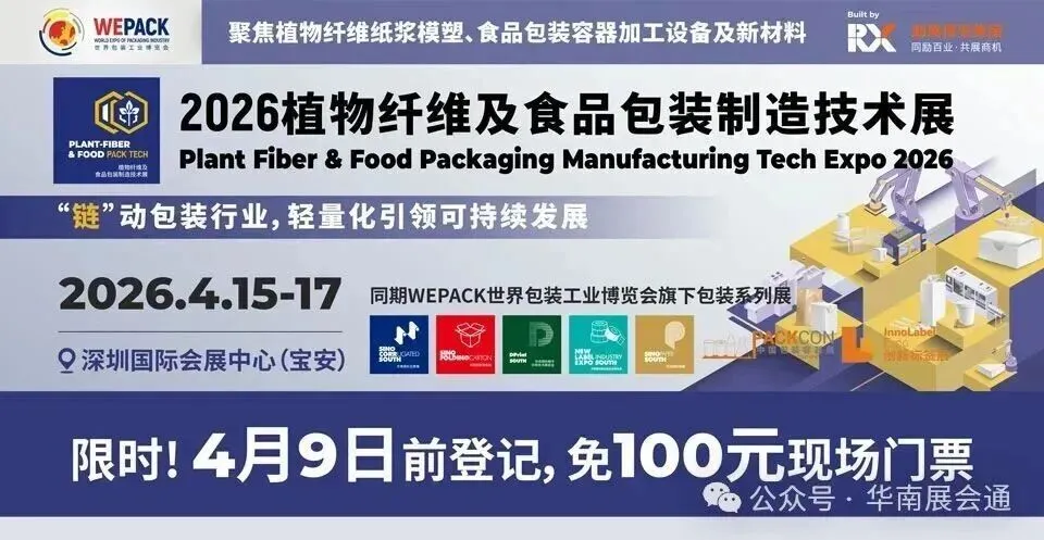 2026年4月15-17日,2026植物纤维及食品包装制造技术展将在深圳国际会展中心(宝安)隆重开幕!