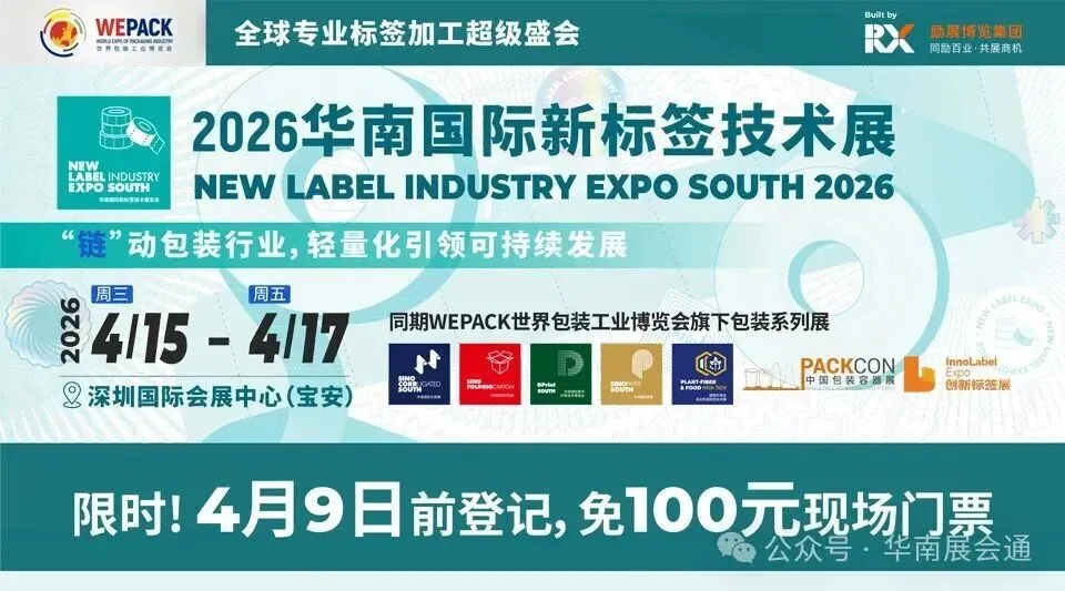 作为透视全球包装行业发展格局,洞见行业发展新趋势的业界盛会,WEPACK世界包装工业博览会旗下包装系列展之一2026华南国际新标签技术展将于2026年4月15-17日在深圳国际会展中心(宝安)举办。