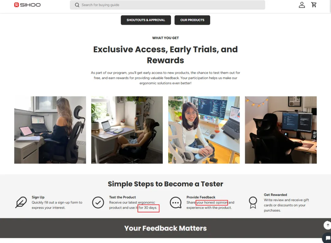 西昊在海外合作中更倾向于长期体验型内容。其官方 review program 也要求体验者先使用 30 天后再提交真实反馈。这类内容更容易强化用户对产品舒适度与耐用性的认知,并成为购买决策的重要参考,同时形成可复用的内容版权资产。
